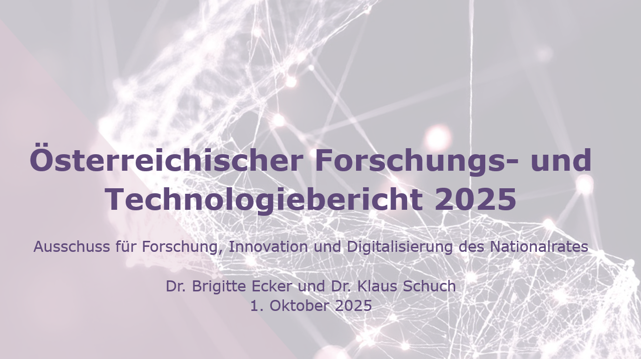 Gemeinsam mit Klaus Schuch präsentiert Brigitte Ecker den Forschungs- und Technologiebericht 2023 im Ausschuss für Forschung, Innovation und Digitalisierung des Nationalrates am 28.11.2023. Im Fokus...